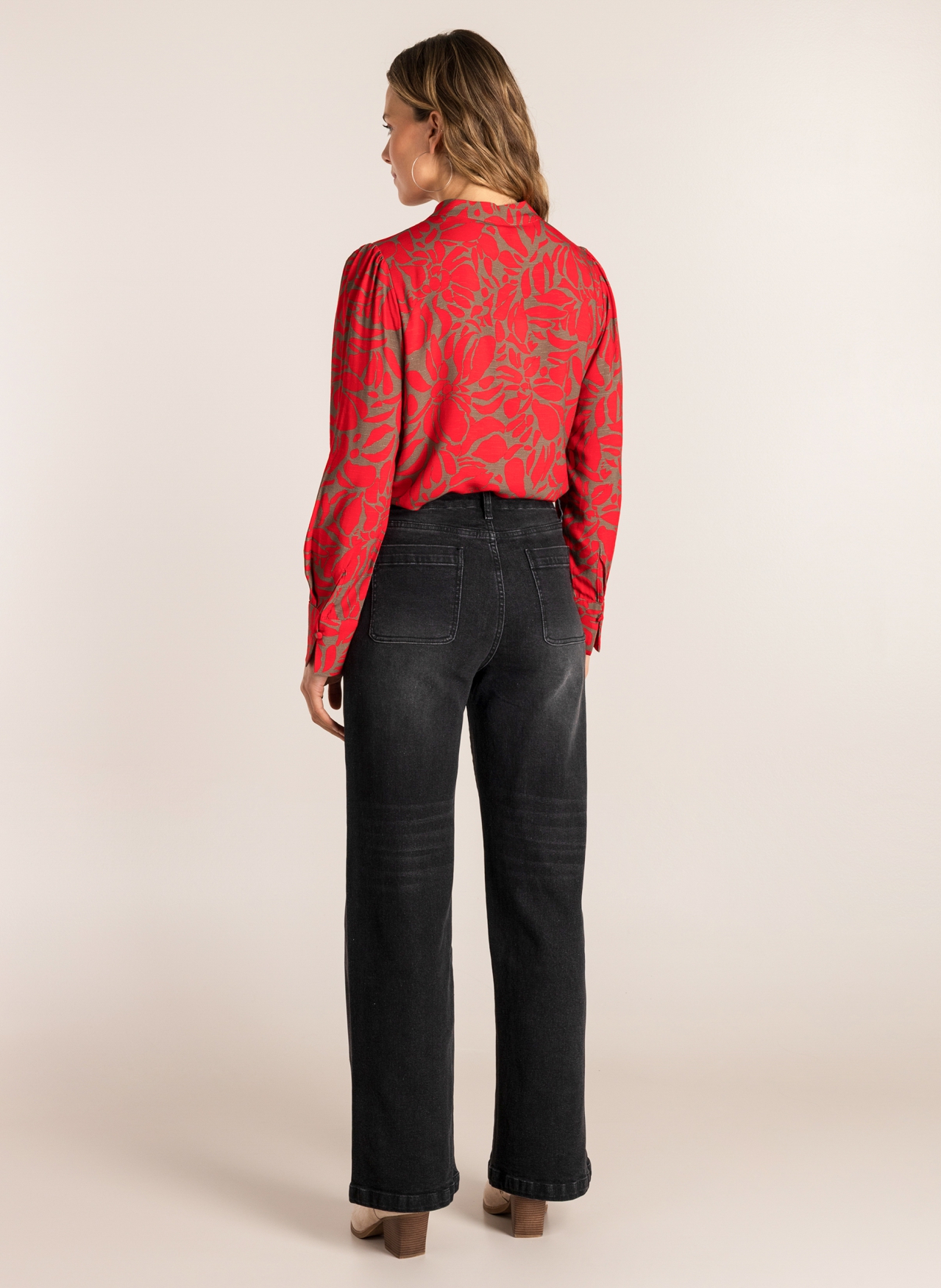 Easy fit, sterke look! Deze zwarte jeans met wijde pijpen geeft je outfit direct een stoer silhouet. De stretchstof beweegt soepel mee en de zijrits zorgt voor een strakke, flatterende lijn. Draag met een simpele top of blazer — effortless cool gegarandeerd.