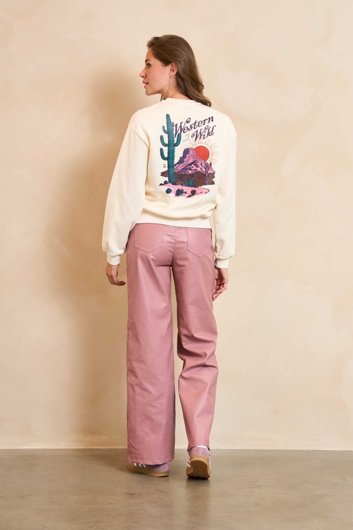 Sweater Nayla is een ecru sweater met ronde hals en lange mouwen. Het artwork op de borst en achterkant geeft een speelse twist. De losvallende fit en zachte stof maken dit een fijne everyday sweater.